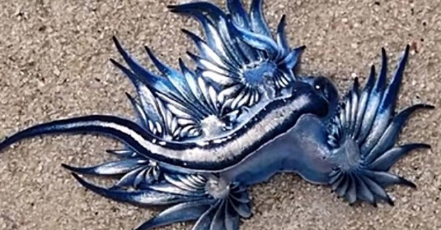 Güney Afrika'nın Cape Town kentine yakın bir plajda düzinelerce tuhaf, mavi renkli, ejderhaya benzeyen deniz hayvanı karaya vurdu. Hayvanların, melek balığı veya deniz kırlangıcı takma adlarıyla da tanınan bir tür deniz salyangozu, Glaucus atlanticus olduğu düşünülüyor.