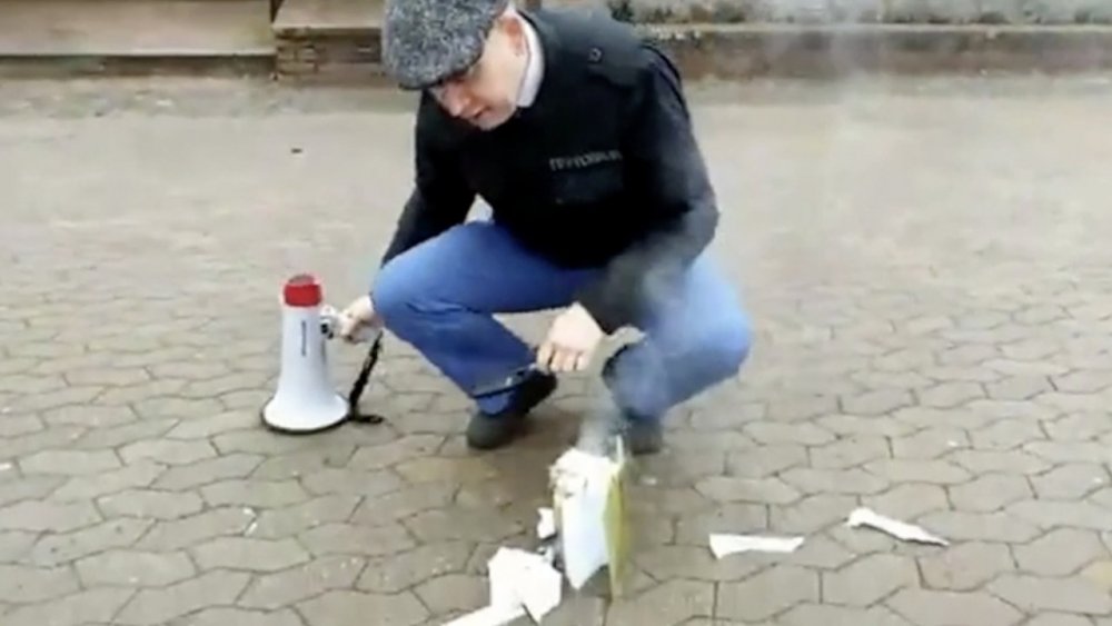 Elindeki Kur'an-ı Kerim'i yere bırakan Paludan, tepkilere aldırış etmeden çakmakla tutuşturduğu Kur'an'ı Kerim'i yaktı.