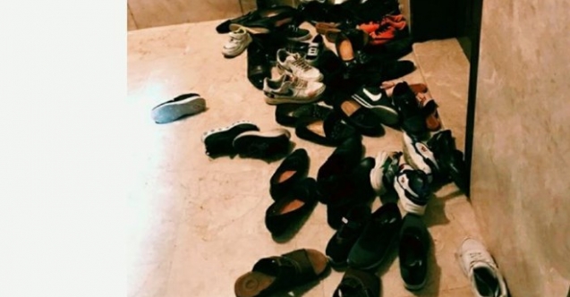Fotoğraf Türkiye'nin Sincan ilçesinde denetim yapan ekiplerin cep telefonu kamerasından...Koronavirüse yakalanan bir vatandaşın evde olup olmadığını kontrole giden ekipler kapıda aralarında çocuk ayakkabıların da olduğu 30 çifte yakın yakın ayakkabı ile karşılaştı.