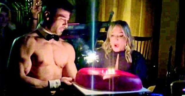 Tümer için kırmızı dudak şeklinde özel bir pasta hazırlandı. Kutlamadaki erkek garsonlar ise gecenin en dikkat çeken ayrıntısı oldu.
