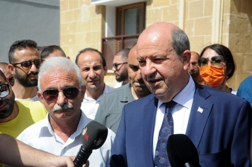 Başbakan Ersin Tatar toplantı devam ettiği sırada dışarı çıkarak partililere seslendi.