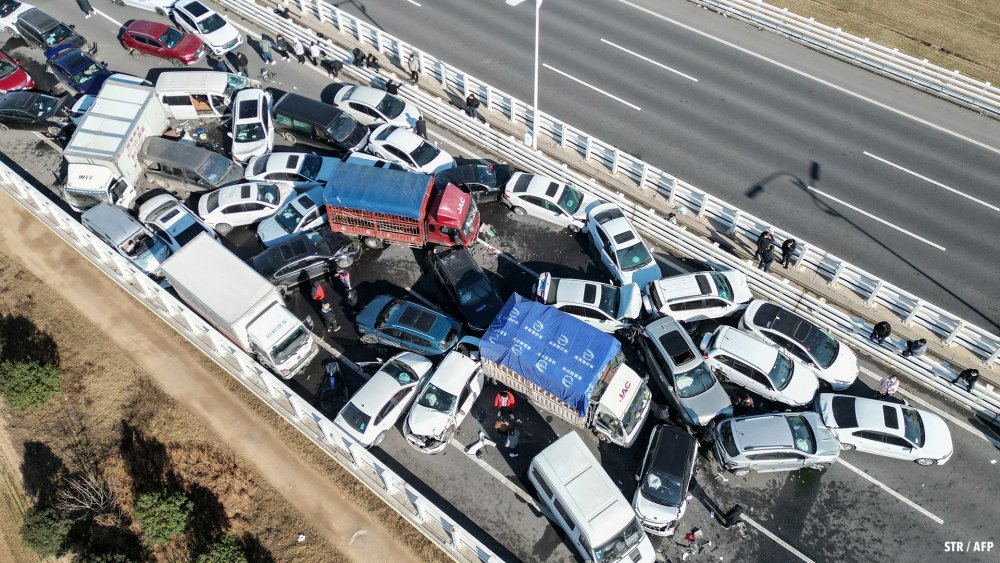 Çin’de Zhengzhou kentindeki bir köprüde 200'den fazla araç yoğun sis nedeniyle birbirine girdi.