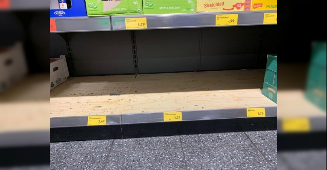 Birçok büyük markette yağ ve un reyonları boşalmış durumda. Almanlar, yeni mal gelir gelmez bir-iki saat içinde onları da hemen satın almaya koşuyor.