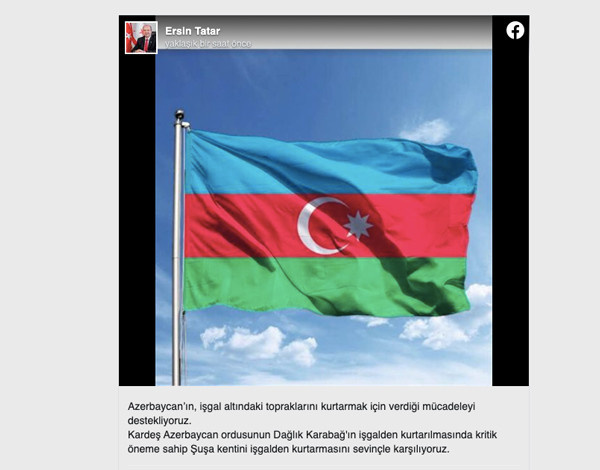 “Azerbaycan’ın, işgal altındaki topraklarını kurtarmak için verdiği mücadeleyi destekliyoruz. Dağlık Karabağ'ın işgalden kurtarılmasında kritik öneme sahip Şuşa kentinin işgalden kurtarılmasını sevinçle karşılıyoruz. Gardaşımızın zaferi kutlu olsun.”