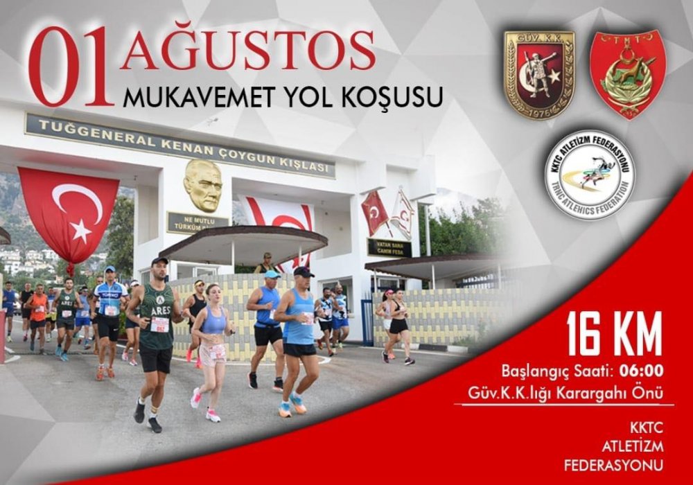 1 Ağustos Perşembe sabahı saat 06.00’da Boğazköy’de, Güvenlik Kuvvetleri Karargahı'ndan başlayacak 16 kilometrelik mukavemet yol koşusuna katılım şartları ve müracaat formuna KKTC Atletizm Federasyonu resmi internet sitesindeki duyurular bölümünden (www.ktaf.org.tr) veya federasyonun resmi sosyal medya hesaplarından (facebook-instagram) ulaşılabilecek.