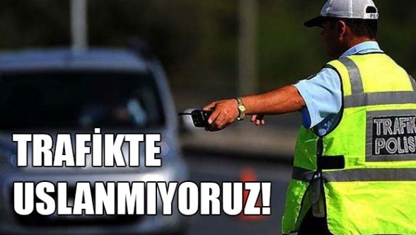 “Sürat ( 800 ) , Tehlikeli Sürüş ( 11 ), Dikkatsiz Sürüş ( 46 ), Seyrüsefer Ruhsatsız Araç Kullanmak ( 102 ), Sürüş Ehliyetsiz Araç Kullanmak ( 10 ), Alkollü İçki Tesiri Altında Araç Kullanmak ( 56 ), Seyir Halindeyken Cep Telefonu Kullanmak ( 146 ), Emniyet Kemeri Takmadan Araç Kullanmak ( 68 ), Trafik Levha ve İşaretlerine Uymamak ( 104 ), Trafik Işıklarına Uymamak ( 5 ), Muayenesiz Araç Kullanmak ( 28 ), Sigortasız veya Kapsamı Dışında Araç Kullanmak ( 33 ), Yolcu Taşıma "T" İşletme İzinsiz Araç Kullanmak ( 13 ), Koruyucu Başlık Takmadan Motosiklet Kullanmak ( 4 ) ve 758 diğer trafik suçları."