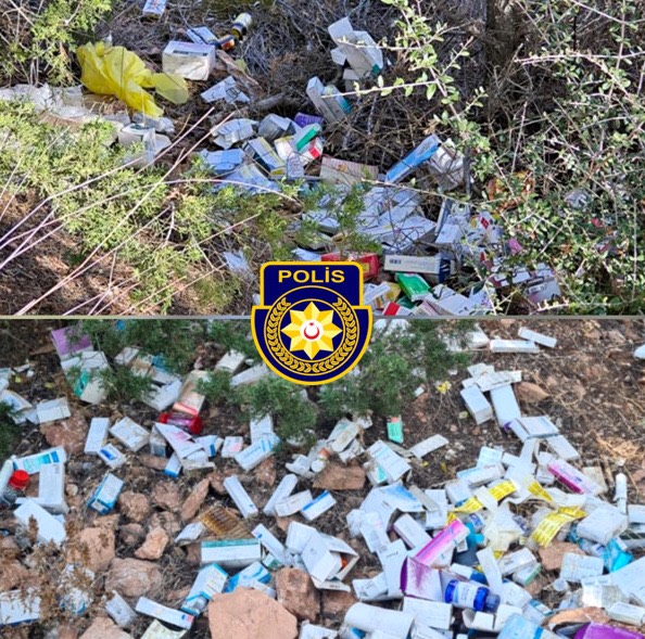 Ergenekon-Tirmen Anayolu’nun kenarında bulunan arazi içerisine, kimliği meçhul şahıs/lar tarafından dört çöp poşeti içerisinde ilaçlar atıldı. Atılan ilaçlar bugün Geçitkale-Serdarlı Belediyesi Ekipleri tarafından bulunarak Polise teslim edildi.