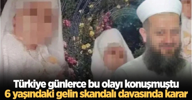 6 yaşındaki çocuğun evlendirilmesiyle ilgili davada baba Yusuf Ziya Gümüşel'e 20 yıl, kız çocuğunun evlendirildiği Kadir İstekli'ye 30 yıl, anne Fatıma Gümüşel ise 16 yıl 8 ay hapis cezası verildi.