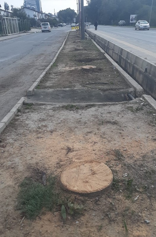 Doğu Akdeniz Üniversitesi Lefkoşa-Mağusa çıkışı yolu kenarında refüj içerisinde olan 15 adet ve boyları yer yer 15 metreyi bulan palmiye ağaçlarının dibinden kesildiğini belirten Eroğlu, ağaçların, elektrik şebeke kablolarına değdiği için önce KIBTEK tarafından budandığını, sonrasında da Gazimağusa Belediyesi tarafından dibinden kesildiğini ifade etti.
