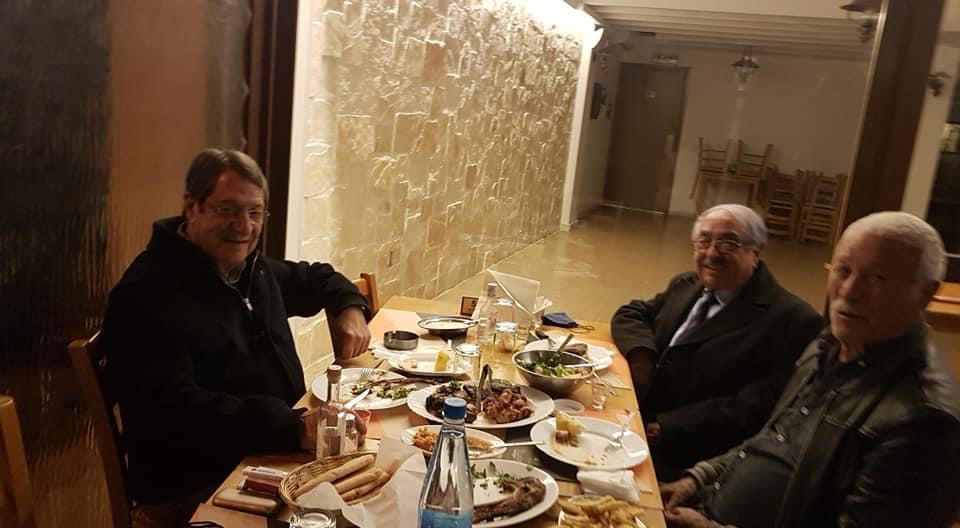 Tsangarides paylaşımında “Bu gece arkadaşım Başkan Nicos Anastasiadis ve sağdıcım Nikos Kosii ile Leventis meyhanesinde akşam yemeği.” notunu paylaştı.