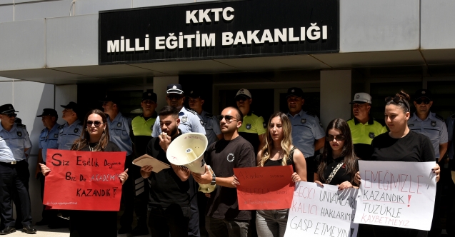 Atatürk Öğretmen Akademisi (AÖA) öğrencileri Öğretmenler Sınav (Değişiklik) Tüzüğü'nü protesto etmek amacıyla Milli Eğitim Bakanlığı önünde oturma eylemi düzenleyip, siyah çelenk bıraktı.