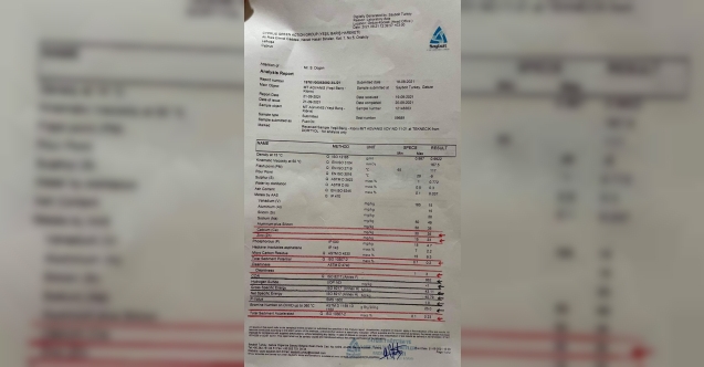 YBH, Teknecik'teki yakıtın analiz sonuçlarını da paylaştı.