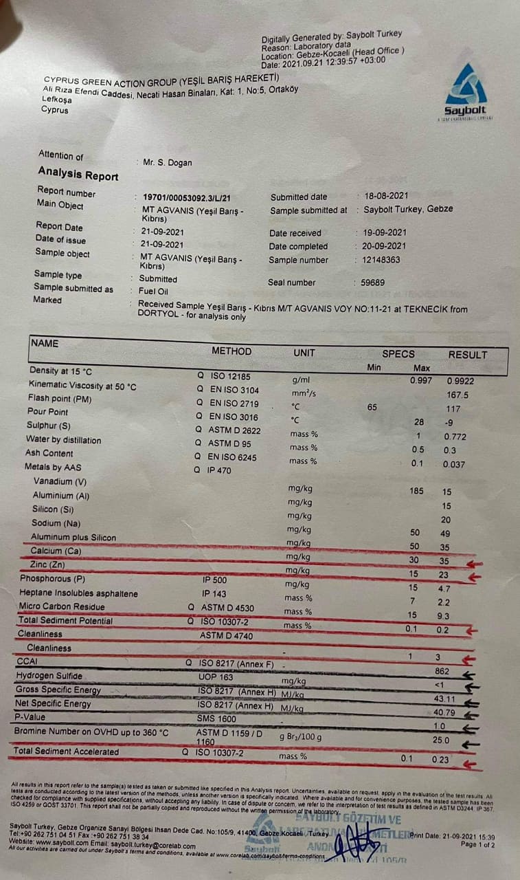 Yeşil Barış Hareketi’nin Ağustos ayında getirilen yakıttan aldığı numunelerin sonuçları geldi ve Arıklı ve Kıb-tek Yönetim Kurulu’nun TPIC’den aldığı yakıtın kirli yakıt olduğunu laboratuvar sonuçlarıyla belgeledi.