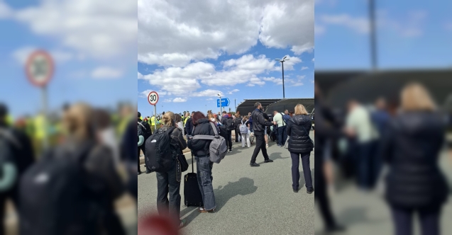 Baf Uluslararası Havalimanı'nın çeşitli hizmet ve departmanlarının personeli binaları terk ederek, havalimanı otoparklarında toplandı.
