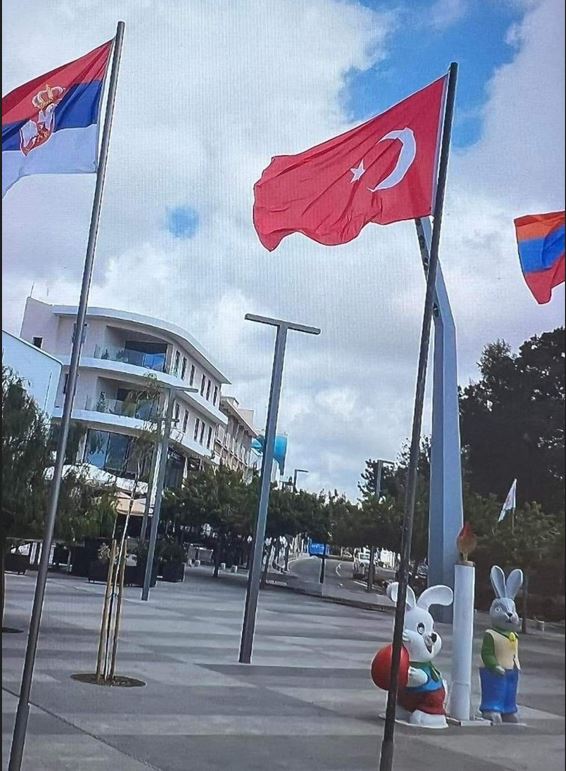Baf’ta spor müsabakası sebebiyle katılımcı ülkelerin bayraklarıyla birlikte göndere çekilen Türk bayrağı, tepkiler sonrasında indirildi.
