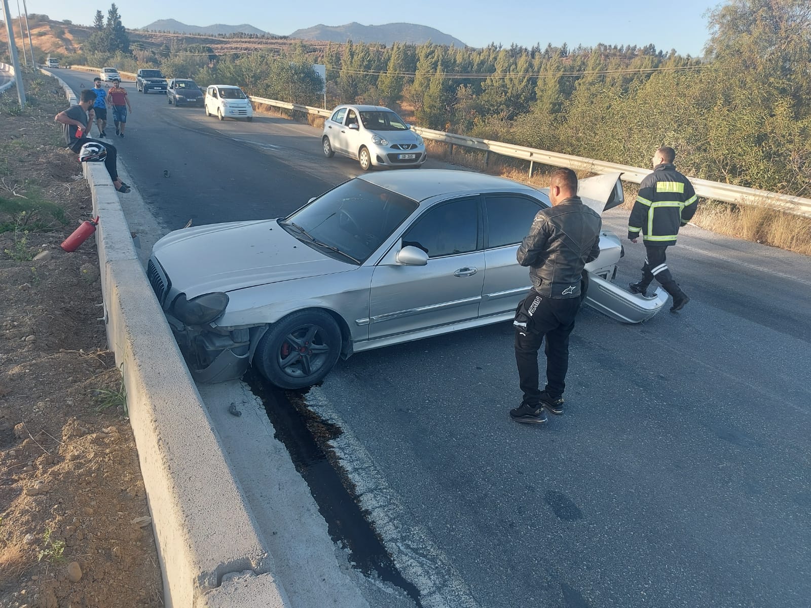 Kaza sonrası alev alan araç,  duyarlı vatandaşların yangın söndürme tüpleri ile müdahale etmesi sonucu söndürüldü.