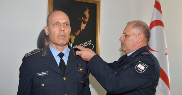 Törende Polis Genel Müdür I. Yardımcısı Ahmet Beşerler’in özgeçmişinin okunmasının ardından Polis Genel Müdürü Kasım Kuni tarafından Beşerler’e rütbeleri takıldı.