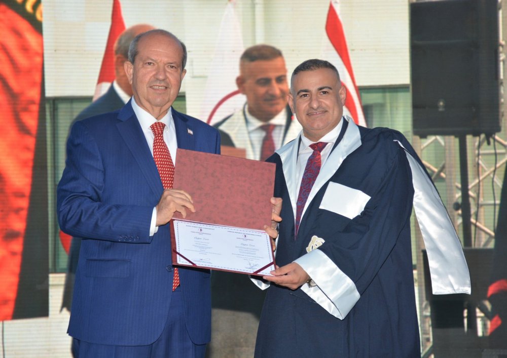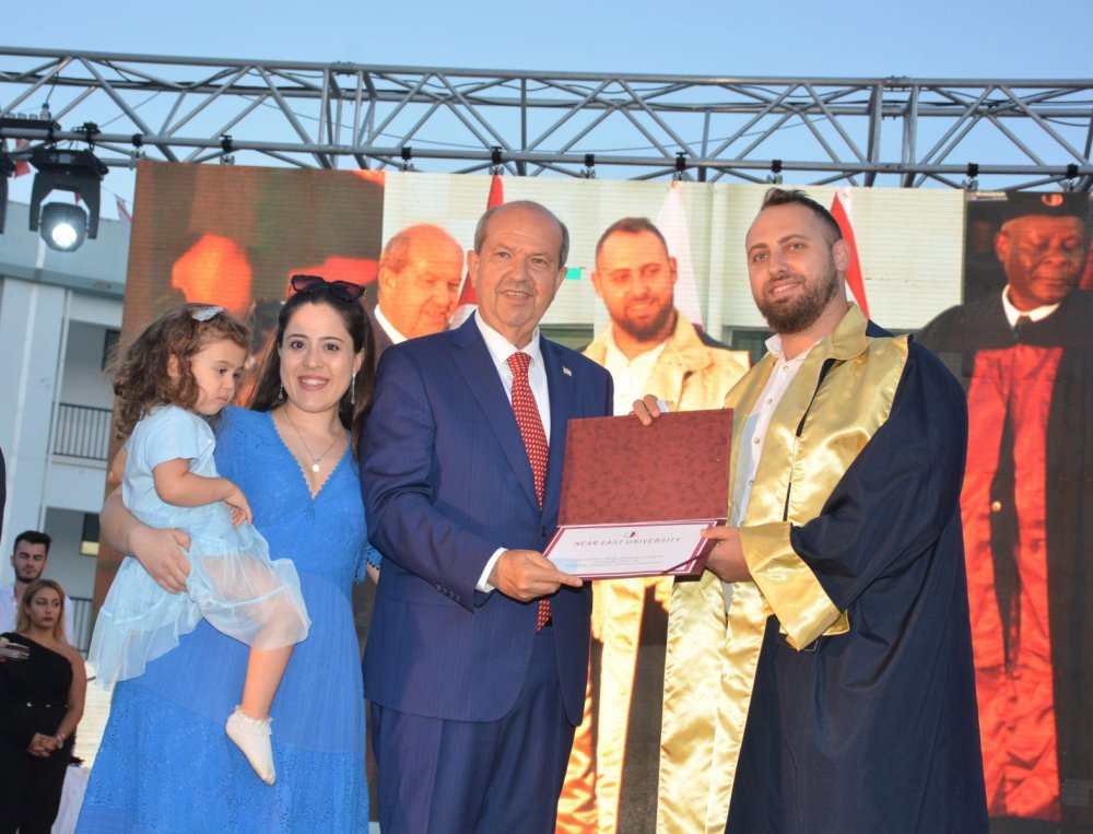 Diploma töreninde konuşan Cumhurbaşkanı Ersin Tatar, Yakın Doğu Üniversitesi mezunlarını kutlayarak başladığı konuşmasını “Artık yeni bir dönemin başlangıcındasınız, elde ettiğiniz deneyimler ve tecrübelerle yeni hayatınıza hazırsınız” sözleri ile devam etti. Cumhurbaşkanı Tatar, aynı zamanda Yakın Doğu Üniversitesi Lisansüstü Eğitim Enstitüsü mezunlarından Cumhurbaşkanlığı Özel Kalem Müdürü Çağın Zort’u da tebrik etti.