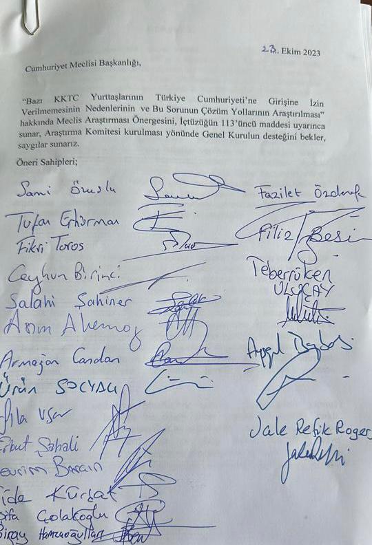 Bazı KKTC Yurttaşlarının Türkiye Cumhuriyeti’ne Girişine İzin Verilmemesinin Nedenlerinin ve Bu Sorunun Çözüm Yollarının Araştırılması”  hakkında Meclis Araştırması Önergesini, İçtüzüğün 113’üncü maddesi uyarınca sunar, Araştırma Komitesi kurulması yönünde Genel Kurul'un desteğini bekler, saygılar sunarız.