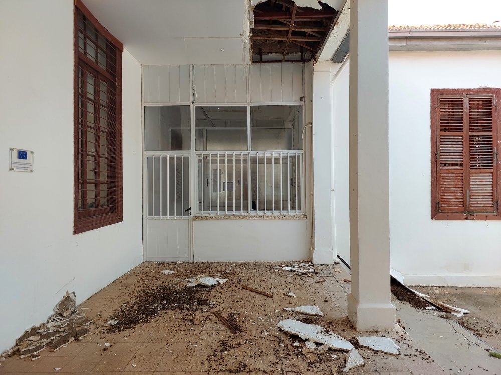 Depreme dayanıksız olduğu gerekçesiyle Yeniceköy’deki eski polis okuluna taşınan Geçitkale’deki Cumhuriyet Lisesi’nin durumu içler acısı. Boşaldıktan sonra tavanı çöken okul, yıkılmaya devam ediyor
