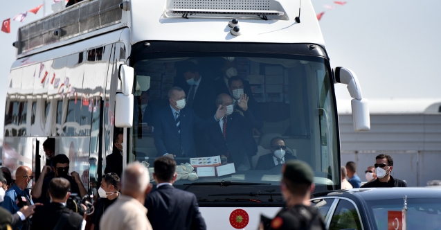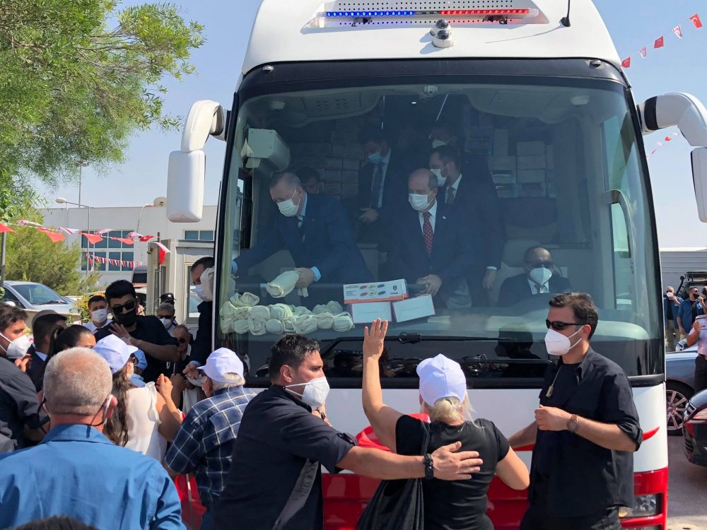 Türkiye Cumhurbaşkanı Recep Tayyip Erdoğan, Lefkoşa’ya Cumhurbaşkanı Ersin Tatar’la birlikte otobüste, halkı selamlayarak geldi.
