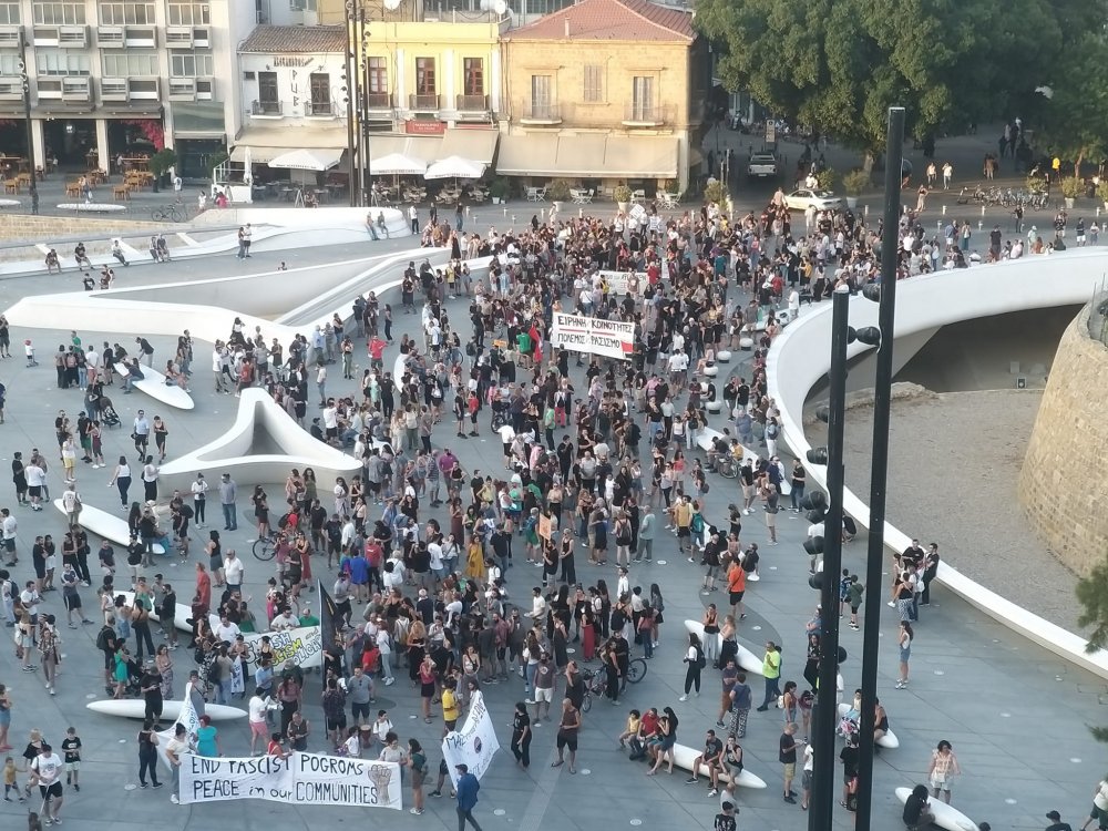 Haravgi gazetesi, etkinliğe katılan yaklaşık 2 bin kişinin, Baf’a bağlı Hloraka ve Limasol’da mültecilere karşı gerçekleştirilen faşist vahşet ve ırkçı saldırılara karşı gösteri yapmak için önce Elefteriya meydanında toplandıklarını, buradan da İçişleri Bakanlığı ve ardından da Meclise yürüdüklerini yazdı.