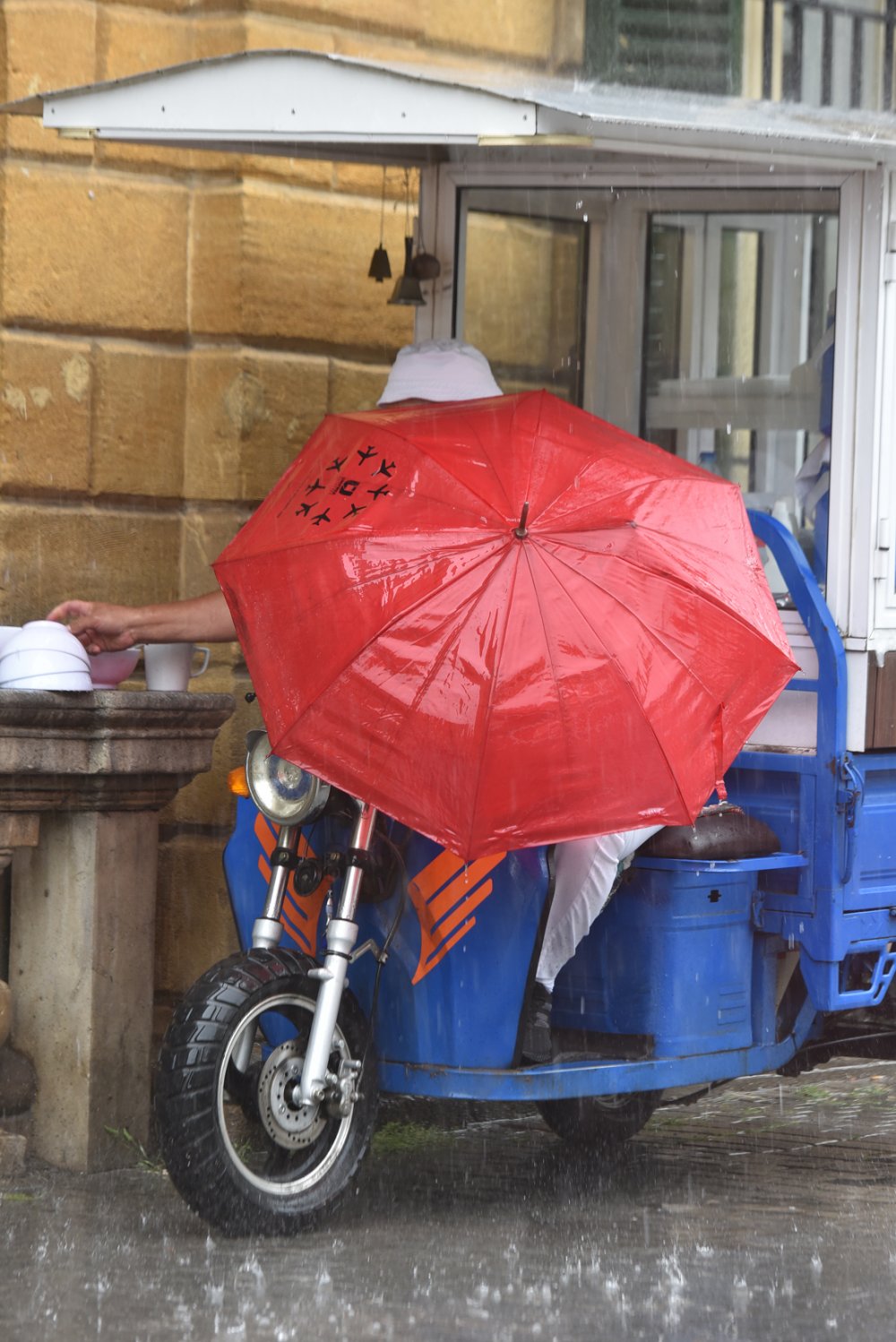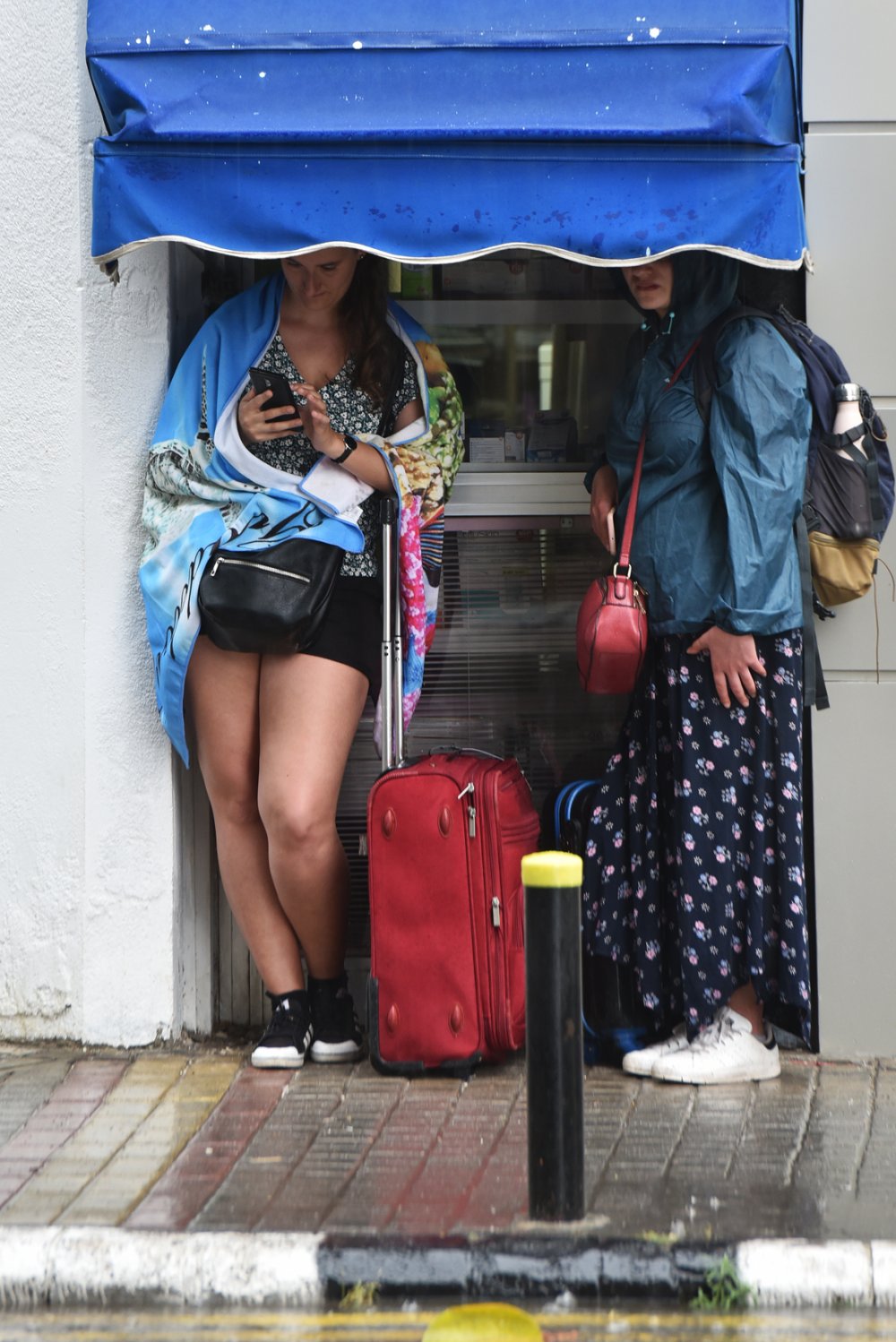 Otobüs durağına, dükkanların brandalarına sığınan vatandaşlardan bazıları da tek şemsiyeyi paylaşmak zorunda kaldı.
