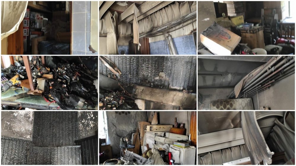 Çıkan yangın sonucu iş yeri içerisinde bulunan; 9 adet vantilatör, kamera monitörü ve UPS cihazı, 1 adet ekmek kızartma makinesi, 1 adet bürosit koltuk, 1 adet su sebili, 16 adet scooter pili, elektrikli süpürge aparatları, mutfak dolapları, 16 adet store perde, 6 adet plastik sandalye, 2 adet şilte ve bir adet klima iç ünitesi yanarak zarar gördü.