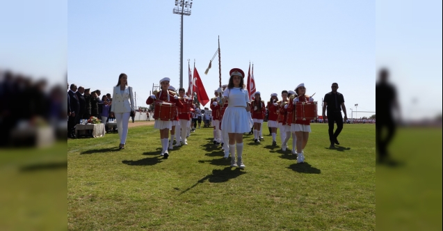 23 Nisan Ulusal Egemenlik ve Çocuk Bayramı kutlamaları Atatürk Anıtı önünde başladı ve Cumhuriyet Stadyumu’nda devam etti. Protokol sırasına göre Atatürk Anıtı’na çelenklerin konulmasıyla başlayan tören saygı duruşu ve İstiklal Marşı eşliğinde bayrakların göndere çekilmesi ile son buldu.