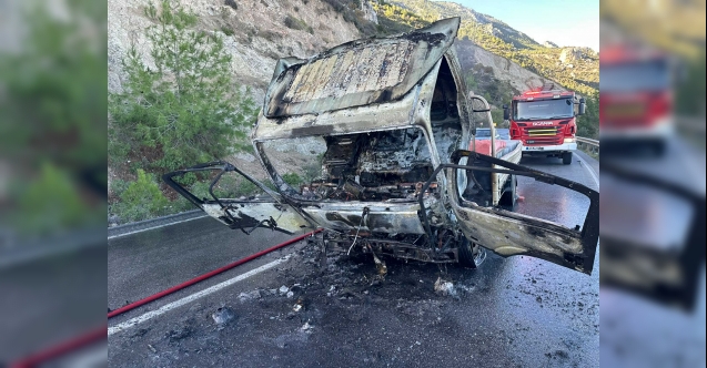 İtfaiye ekipleri tarafından söndürülen yangında, aracın ön kabini, motor bölümü ve ön lastikleri tamamen yandı.
