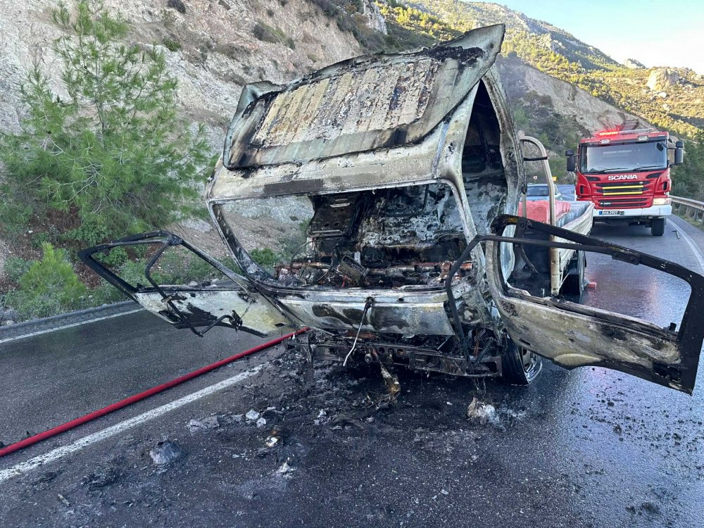 Saat 08.30’da Girne’de Beşparmaklar Caddesi'nde Müslüm Ercan’ın kullanımındaki SE 230 plakalı kamyon araç, muhtemelen aracın makine bölümündeki elektrik aksamlarının kısa devre yapması sonucu alev aldı.