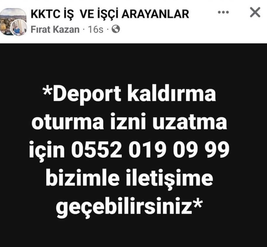 Sosyal medyada paylaşılan yasadışı ilanlara bir yenisi daha eklendi. Fırat Kazan, isimli kişinin yayınladığı ilan, KKTC'deki yasadışılığı bir kez daha gözler önüne serdi.