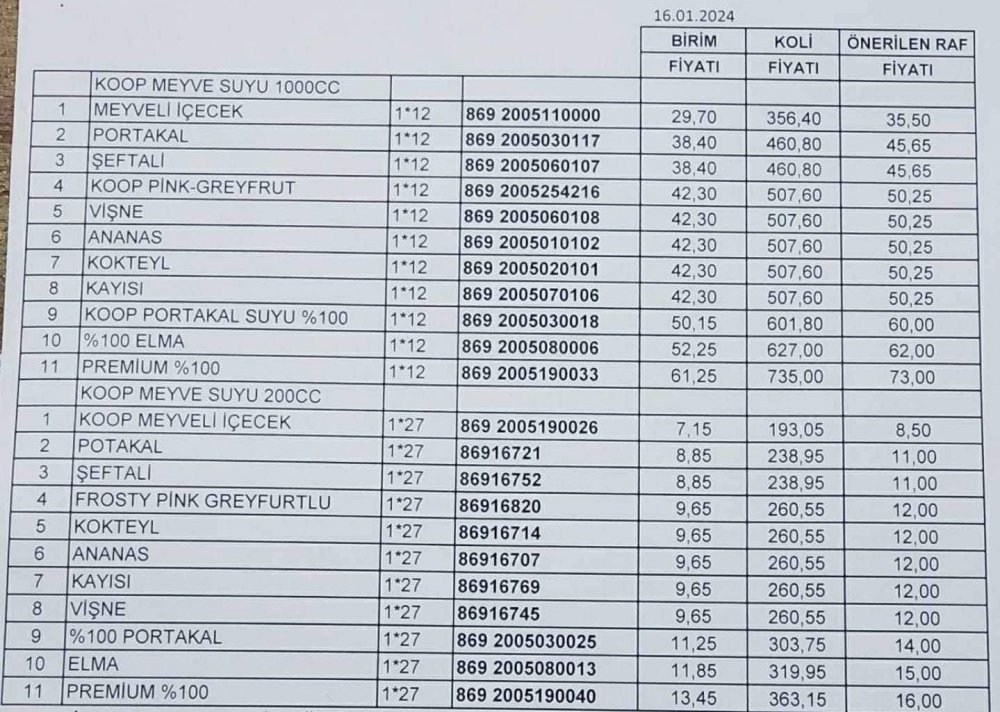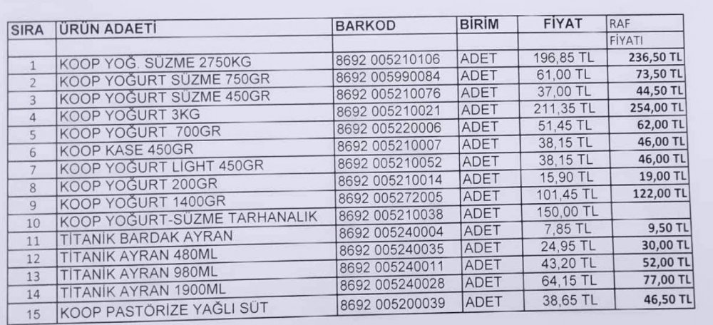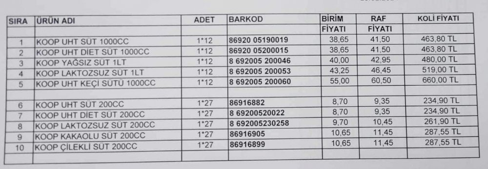 Bu bağlamda, Koop Süt ürünleri zamlandı. Daha önce reyonlarda 31,50 TL’ye satılan 1 litrelik Koop Süt, yapılan 10 TL’lik zamla birlikte 41,50 TL’ye yükseldi.
