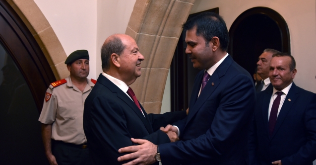 Cumhurbaşkanı Ersin Tatar, KKTC'de günübirlik temaslarda bulunan Türkiye Cumhuriyeti Çevre, Şehircilik ve İklim Değişikliği Bakanı Murat Kurum’u kabul etti.