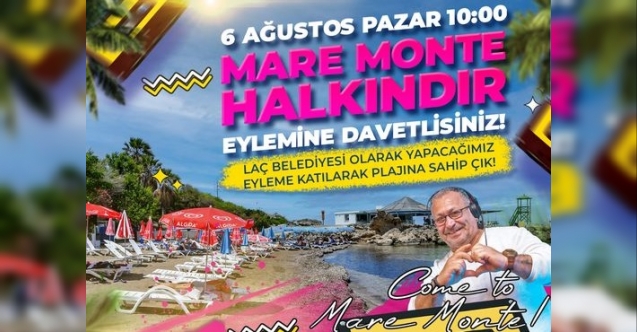 Lapta Alsancak Çamlıbel Belediyesi, Mare Monte Plajı için verdiği mücadeleyi sürdürüyor. Belediye, “Mare Monte plajı halkındır” sloganıyla 6 Ağustos Pazar günü saat 10.00’da müzikli, eğlenceli eylem yapılacağını duyurdu.