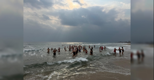 İskele'de soğuk havaya aldırış etmeyen yabancılar denize girerek hem Noel'i kutladı hem de kanser hastalarına destek oldu