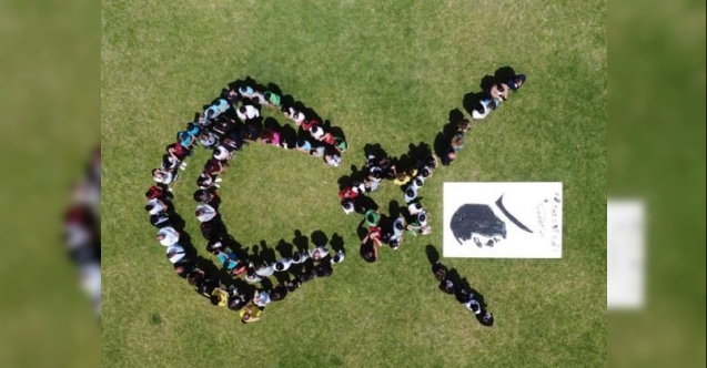 ÖĞRENCİLER BİR ARAYA GELEREK AY YILDIZ ŞEKLİ OLUŞTURDU