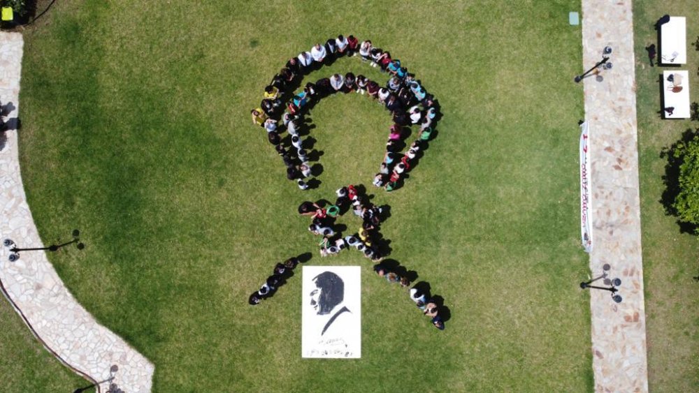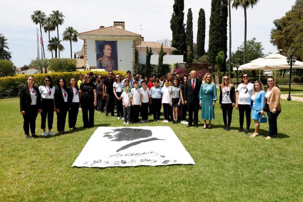 Cumhurbaşkanı Ersin Tatar ise öğrencilere hitaben bir konuşma yaptı. Öğrenciler, bir araya gelip oluşturdukları ay yıldız şeklinde Cumhurbaşkanı’nı dinledi.