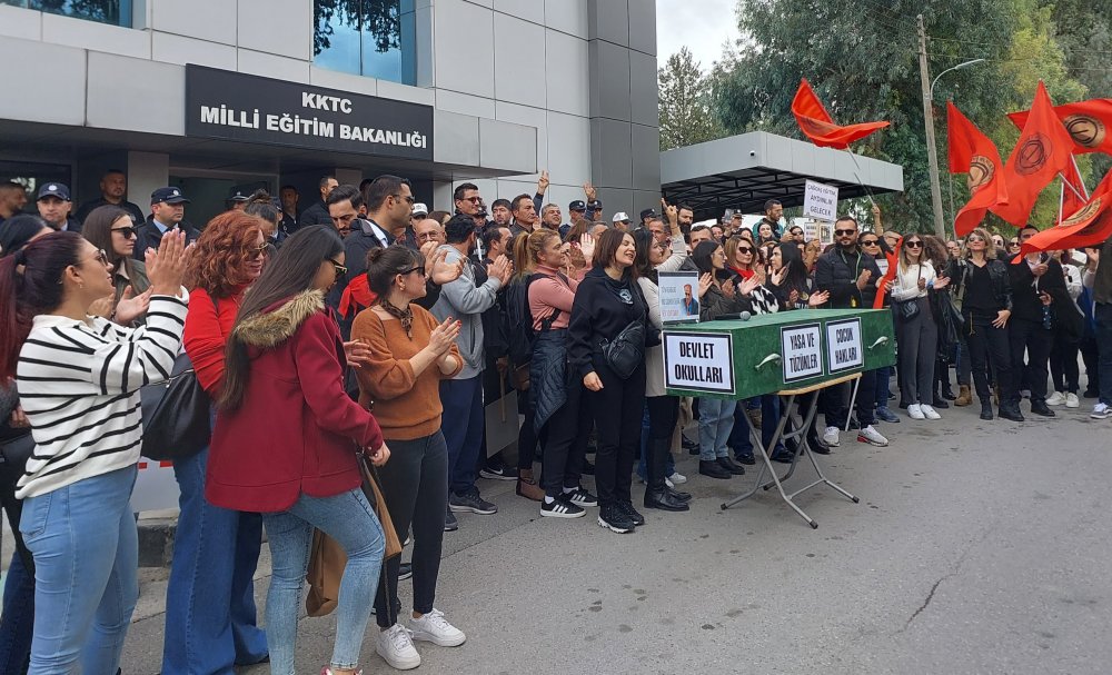 Kıbrıs Türk Orta Eğitim Öğretmenler Sendikası (KTOEÖS), Lefkoşa’ya bağlı 7 okulda greve giderek, Milli Eğitim Bakanlığı önünde eylem yaptı.