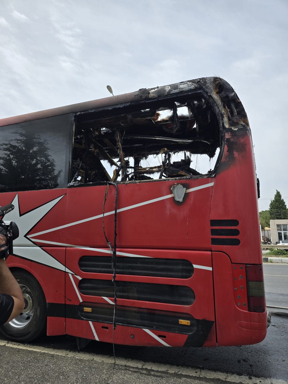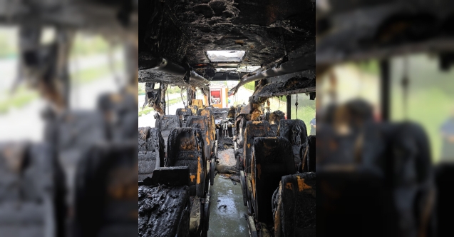 Bir anda alevler içinde kalan otobüsteki yangın, İtfaiye ekipleri tarafından söndürüldü.