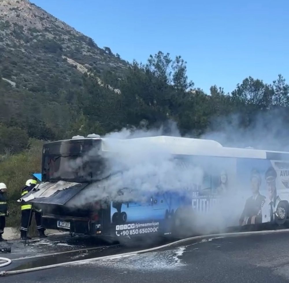Lefkoşa-Girne ana yolu üzerinde seyir halinde olan bir otobüste yangın çıktı