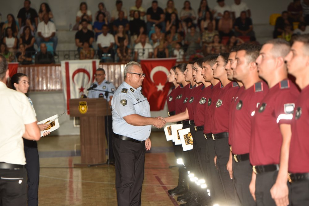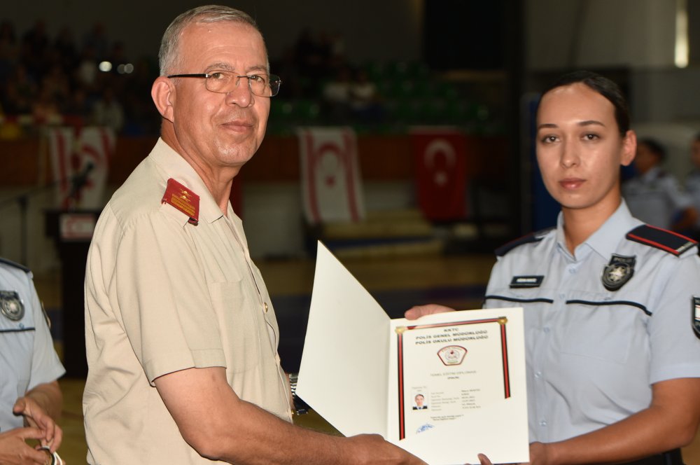 Tören, Cumhurbaşkanı Ersin Tatar’ın mezunları selamlamasıyla başladı. Saygı duruşu ve İstiklal Marşı’nın okunmasının ardından, öğrencilerin yemin etmesiyle devam eden törende, dönem adına kurs birincisi polis memuru Ahmet Veli Elagöz konuşma yaptı.