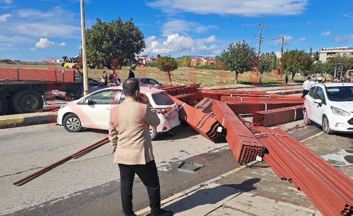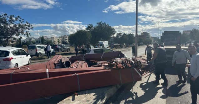 Küçük Kaymaklı’da demir profilleri taşıyan TIR’ın sürücüsü, direksiyon hakimiyetini kaybederek karşı şeride geçti. Kazada demir profiller yola saçıldı, iki aracın arkasına çarptı. Karşıdan gelen bir başka araç ise TIR’a çarpmamak için kaldırıma vurdu. Kazada şans eseri yaralanan olmadı