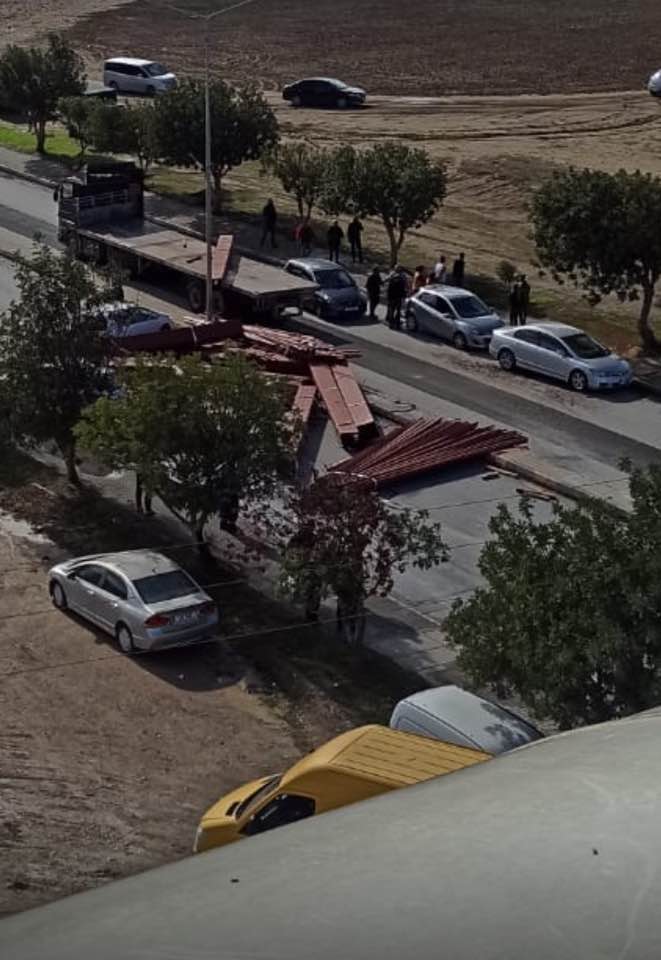 Lefkoşa’da bugün meydana gelen trafik kazasında, TIR ile taşınan demir profiller yola sıçrarken, kazada şans eseri yaralanan olmadı.