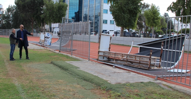 Şiddetli fırtına sebebiyle spor sahalarında da hasarlar meydana geldi