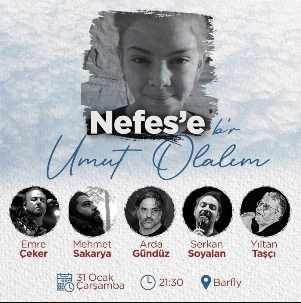 Böbrek ve mesane rahatsızlığıyla mücadele eden 8 buçuk yaşındaki Nefes Davşan’ın tedavi masraflarına yardımcı olmak için 31 Ocak Çarşamba akşamı Nefes’e Bir Umut Olalım” sloganıyla yardım konseri düzenleniyor