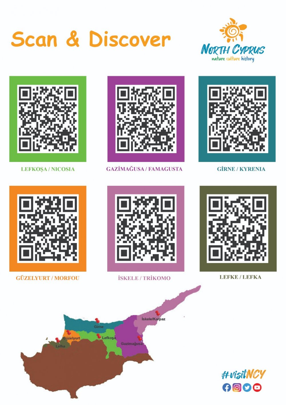 Başbakan Yardımcılığı Turizm Kültür Gençlik ve Çevre Bakanlığı’na bağlı Turizm Tanıtma ve Pazarlama Dairesi’nden yapılan açıklamaya göre, ülkeyi ziyaret eden misafirlerle eğitim için KKTC’ye gelen yabancı öğrencilerin “QR” kodlarını cep telefonlarına okutmasıyla bilgilere ulaşabileceğini belirtti.