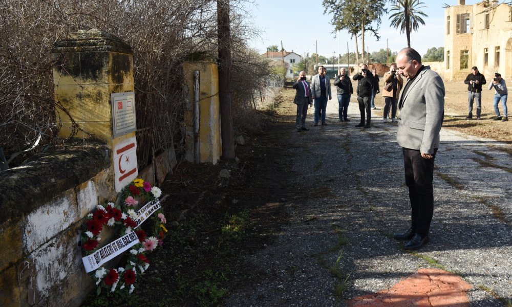 Törende, Lefkoşa Kaymakamı Bora Akkuş, Şehit Aileleri ve Malul Gaziler Derneği Başkanı Gürsel Benan ve Şehit Hasan Kara’nın ağabeyi Erbil Kara tarafından Hasan Kara’nın şehit edildiği yere çelenkler bırakıldı.