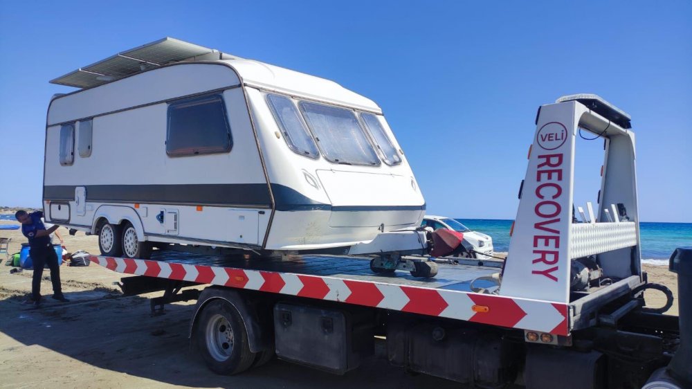 Gazimağusa Belediyesi, karavanların sürekli konakladığı ve adeta yerleşim bölgesi haline dönüşen Silver Beach Plajı’na müdahale etti. Bir süre önce bölgedeki 11 karavan ve 2 çadırın kaldırılması için yasal ihbarda bulunan Belediye ekipleri, sürenin sonunda 1 karavan ve 2 çadırı kaldırdı.