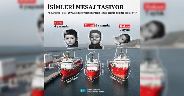 Doğu Akdeniz'de görev yapacak sondaj gemisi Abdülhamid Han'a eşlik eden 3 gemiye Kıbrıs'ta 59 yıl önce Rum çetelerce katledilen Murat, Hakan, Kutsi İlhan'ın isimleri verildi.